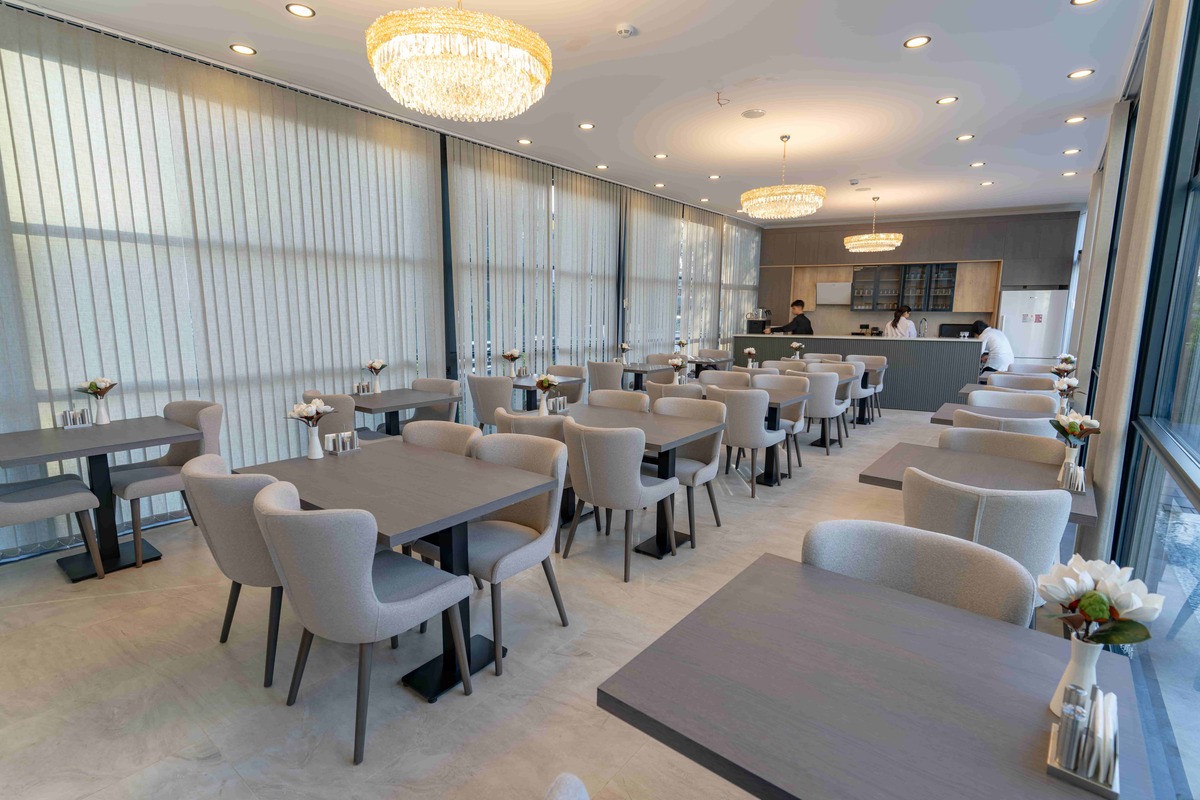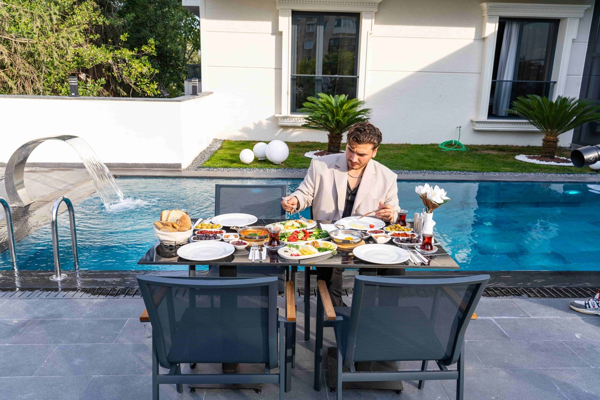 Her sabah şık kahvaltı salonunda serpme kahvaltı servis edilmektedir. Konuklar kahvaltılarını havuz manzarası eşliğinde edebilirler. Havuz kenarındaki şezlonglarda dinlenebilirler.